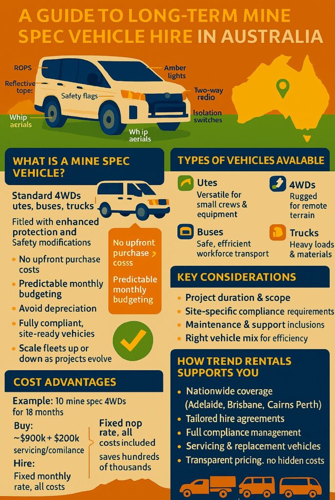 For Australia’s mining, energy, construction, and government projects, vehicles are more than transport—they are the backbone of safe and efficient operations. Long-term mine spec hire ensures fleets are compliant, reliable, and cost-effective, without the heavy burden of ownership.